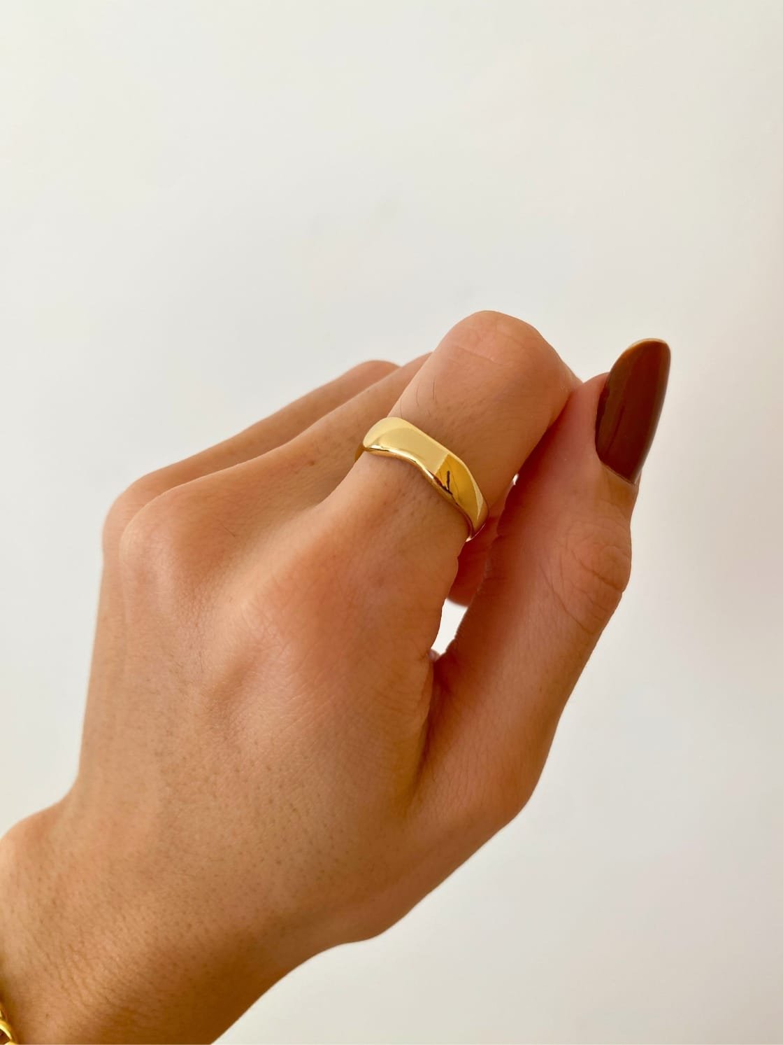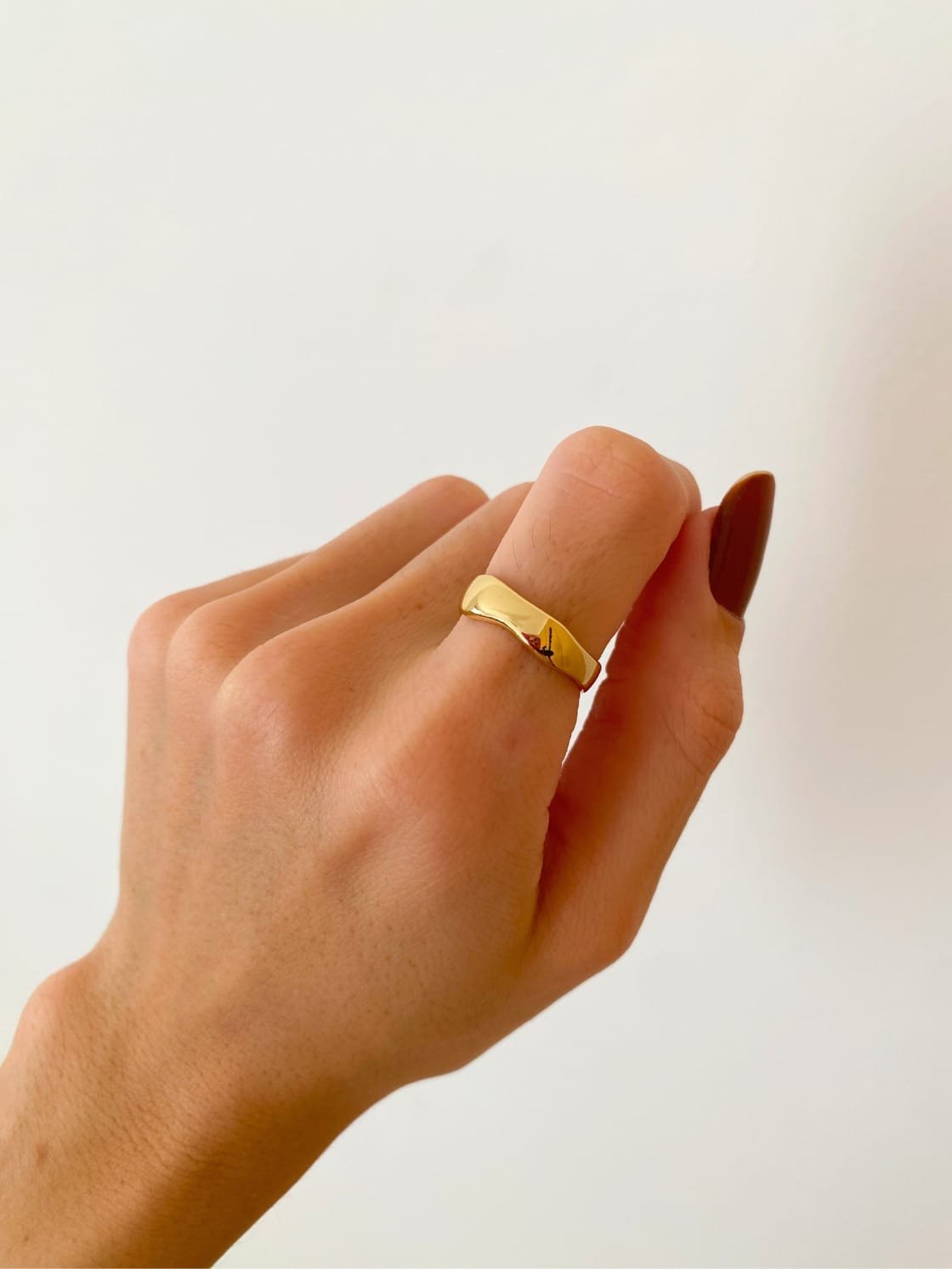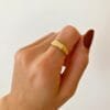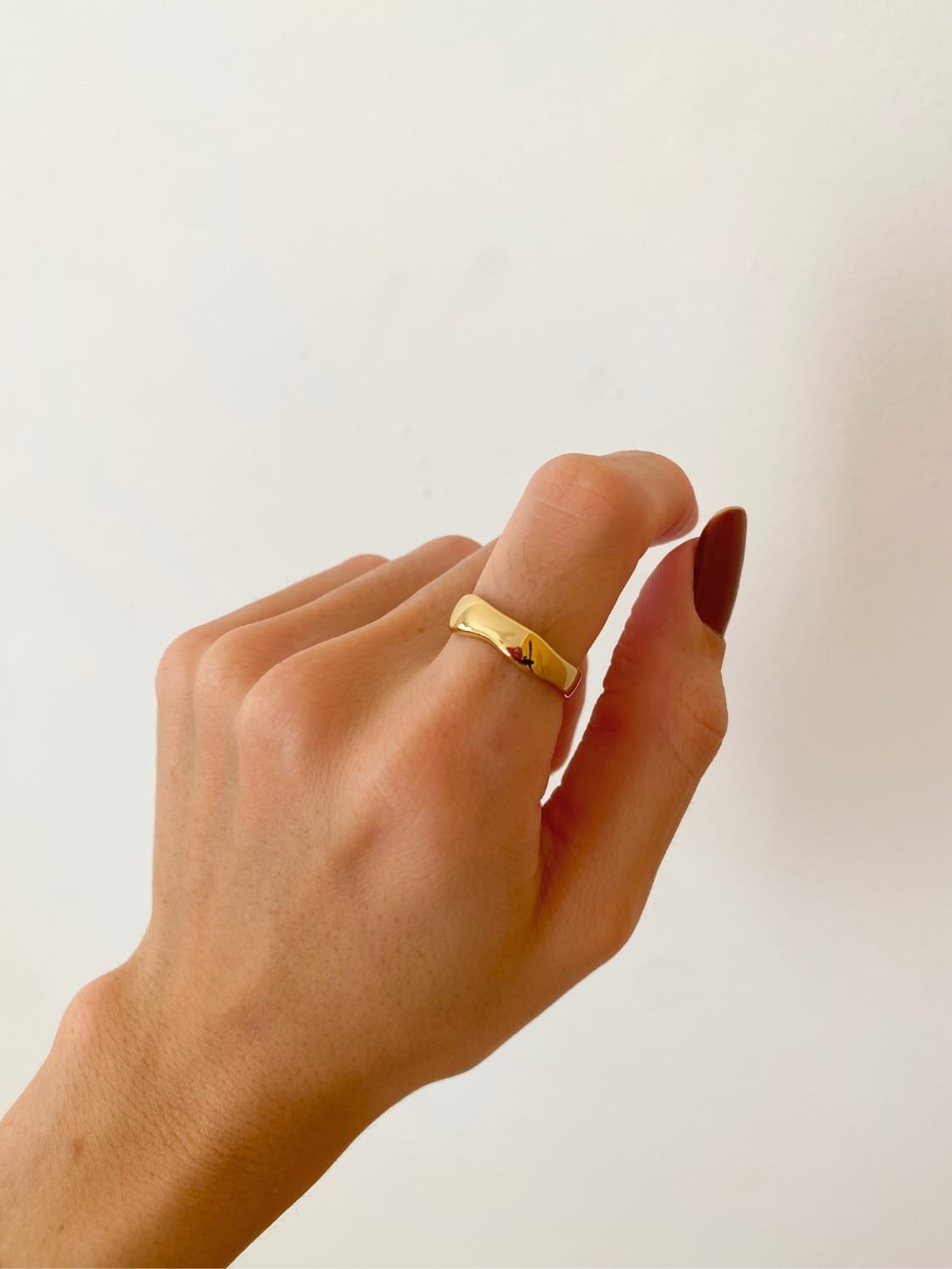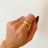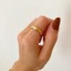 O Anel Mila é o básico perfeito pra usar no dia a dia, regulável, banhado em ouro 18k e formato delicado de ondas