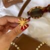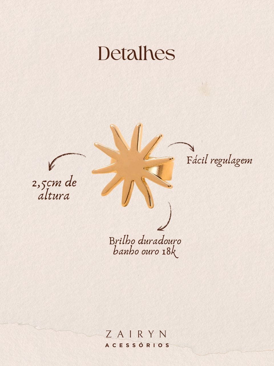 Banhado em ouro 18k e com formato de sol, ele tem um tamanho de 2,5cm de altura e é regulável, você pode ajustar facilmente ao seu tamanho.