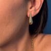 O Clássico não precisa ser básico, e o brinco Helena prova isso. Chic, sofisticado, elegante, ele traz um toque moderno e estiloso para sua combinação de look e acessórios. Banho de ouro 18k, tem alta qualidade e durabilidade.