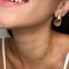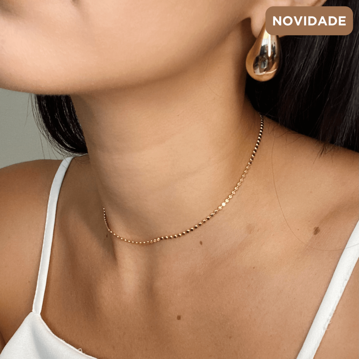 O Choker Nina tem banho ouro 18k e prata ródio, é bem delicado em formato de pontos. Ótima escolha para usar no dia a dia, bem versátil, combina com outros modelos e qualquer estilo de brinco.