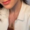 O Pingente de gota possui um design minimalista, mas com uma presença marcante, que atrai os olhares de forma discreta e elegante. A suavidade do formato cria um contraste perfeito com o brilho do banho ouro 18k, criando uma harmonia visual que exala sofisticação.