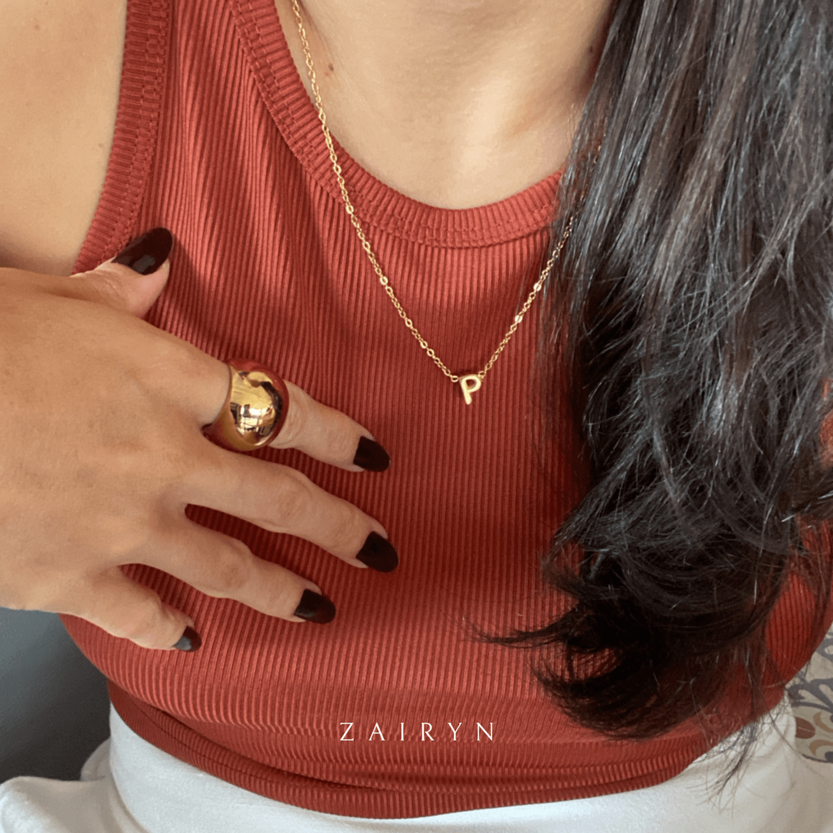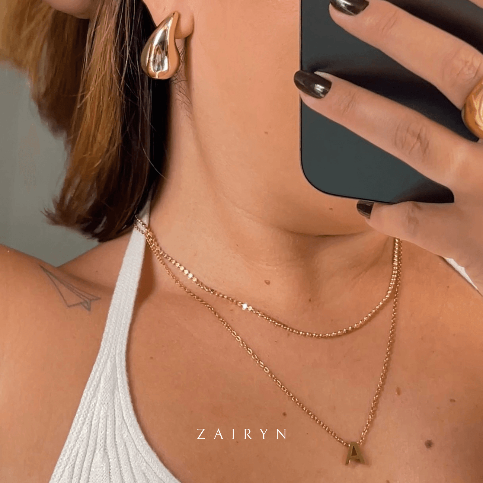 O Colar Inicial transforma o básico em algo especial. Com um pingente mais robusto e marcante, ele combina presença e delicadeza, destacando-se entre os modelos convencionais.